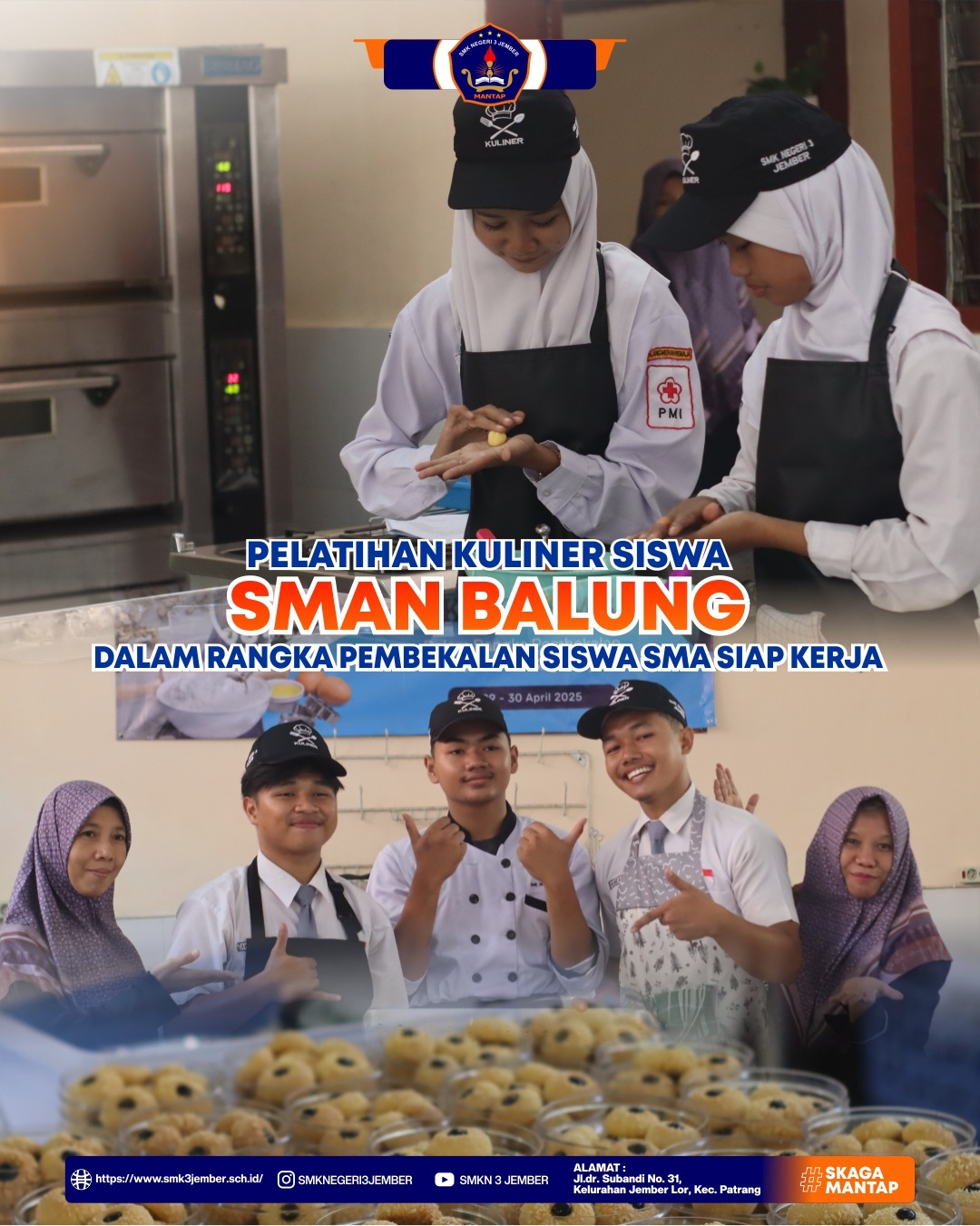 Kolaborasi Mantap SMKN 3 Jember dengan SMAN Balung dalam rangka pembekalan siswa SMA agar siap menghadapi dunia kerja, SMKN 3 Jember menggelar Pelatihan Kuliner untuk siswa SMAN Balung pada 29 April 2025.