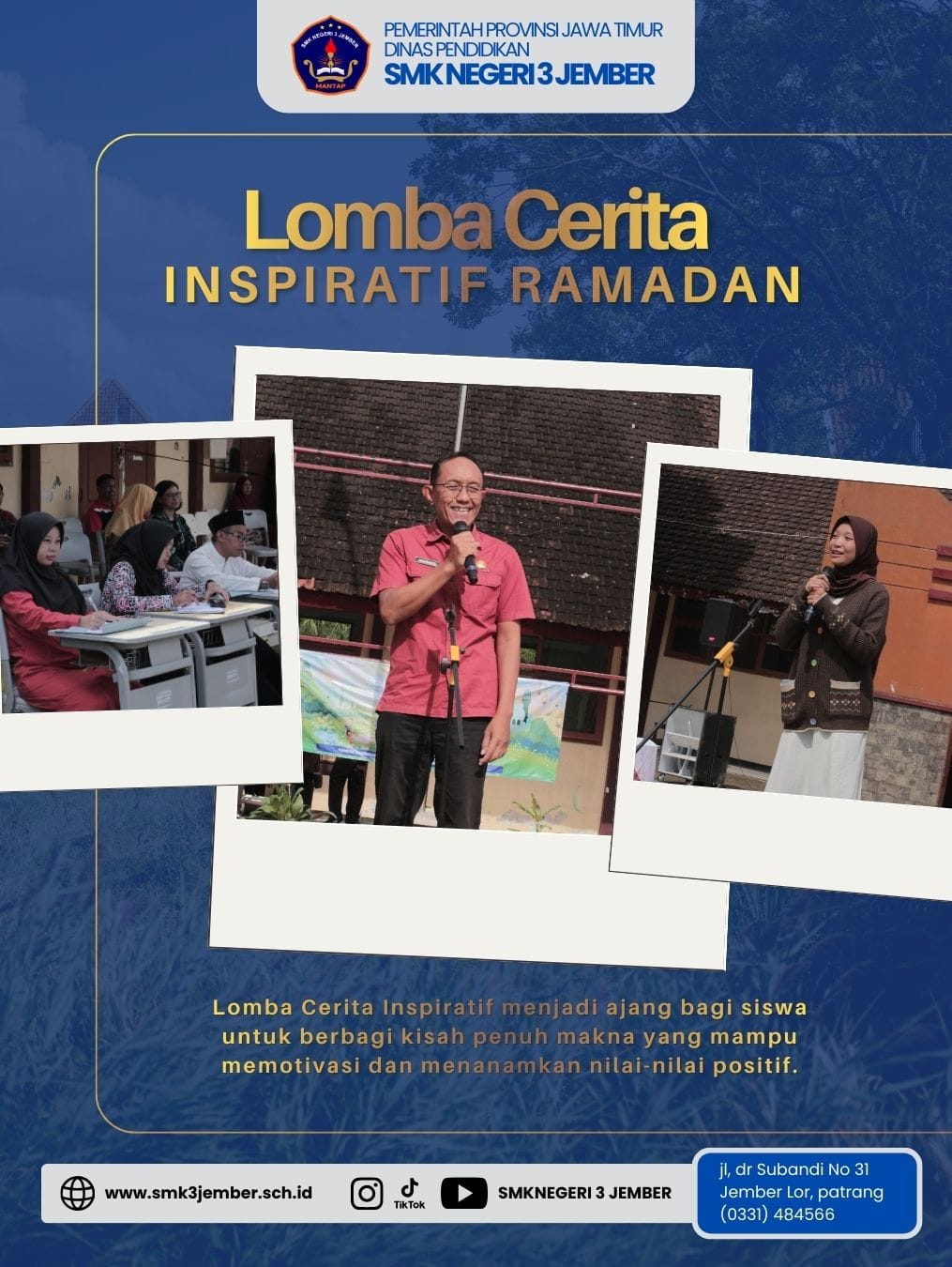 Penyelenggaraan Lomba Cerita Inspiratif Ramadan dilatarbelakangi oleh upaya SMKN 3 Jember dalam menghadirkan kegiatan yang tidak hanya bersifat religius, tetapi juga kreatif dan edukatif. Ramadan menjadi momentum yang tepat untuk mengajak siswa merefleksikan berbagai pengalaman hidup serta nilai-nilai kebaikan yang dapat diterapkan dalam kehidupan sehari-hari.